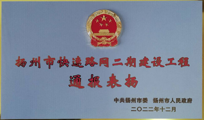我公司承建的揚(yáng)州市快速路網(wǎng)二期建設(shè)工程獲中共揚(yáng)州市委、揚(yáng)州市人民政府通報(bào)表揚(yáng)!